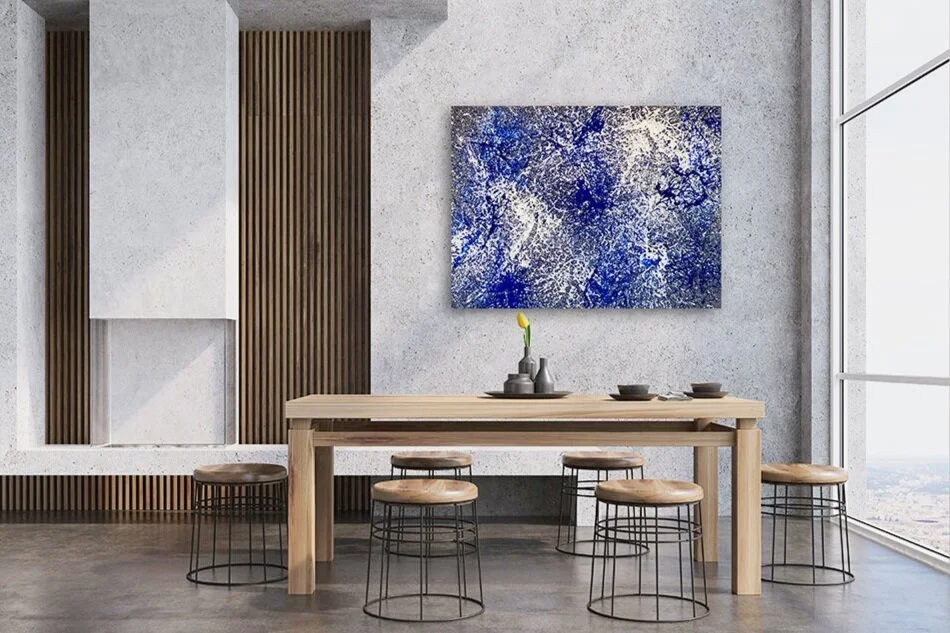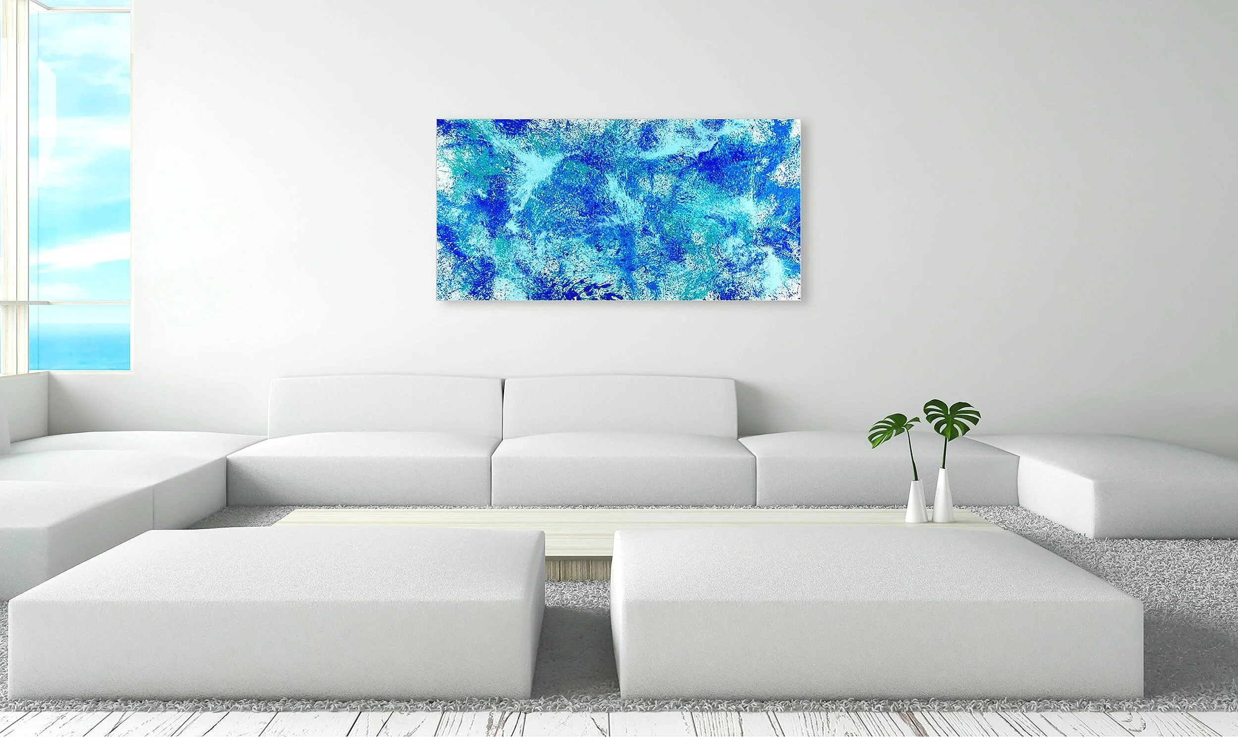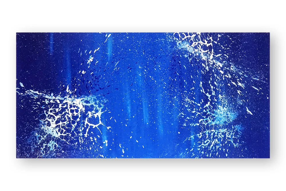 Acrylic on canvas finished with an isolation coat and a coat of gloss varnish for UV protection.